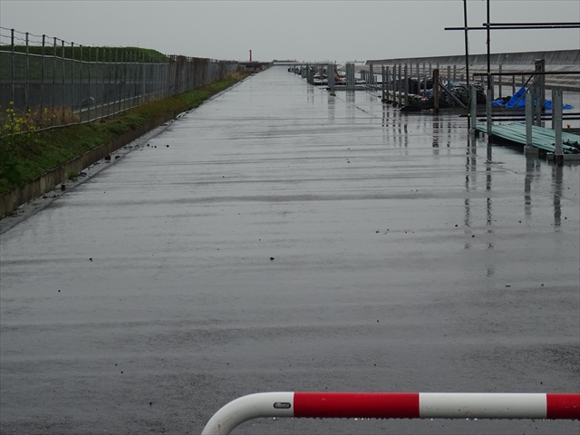 堤防の舗装も無くなり最後は水たまりができた土道をひたすら歩く。